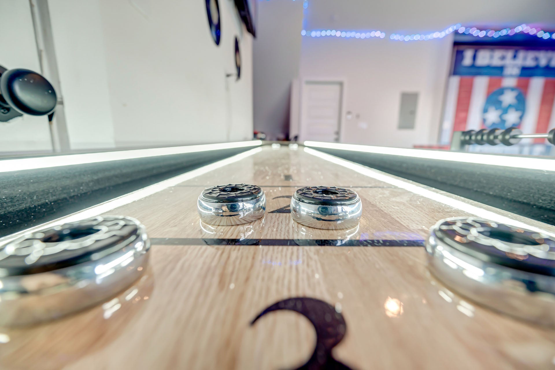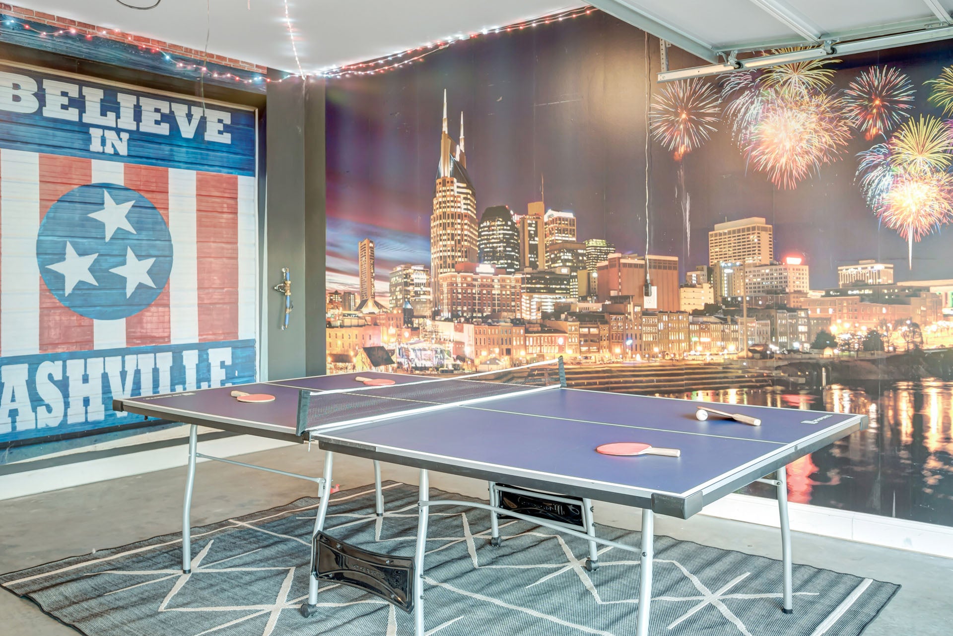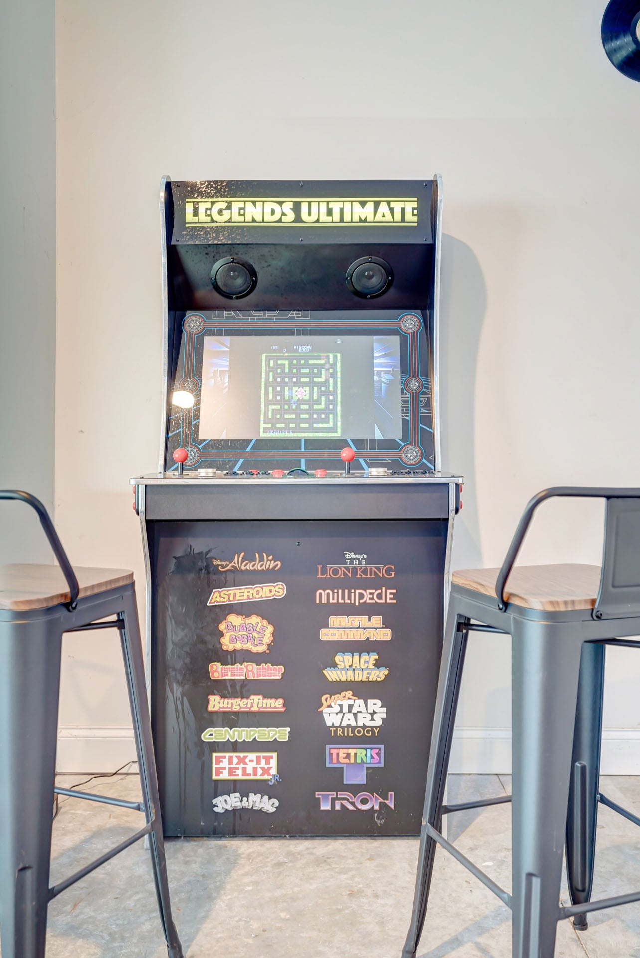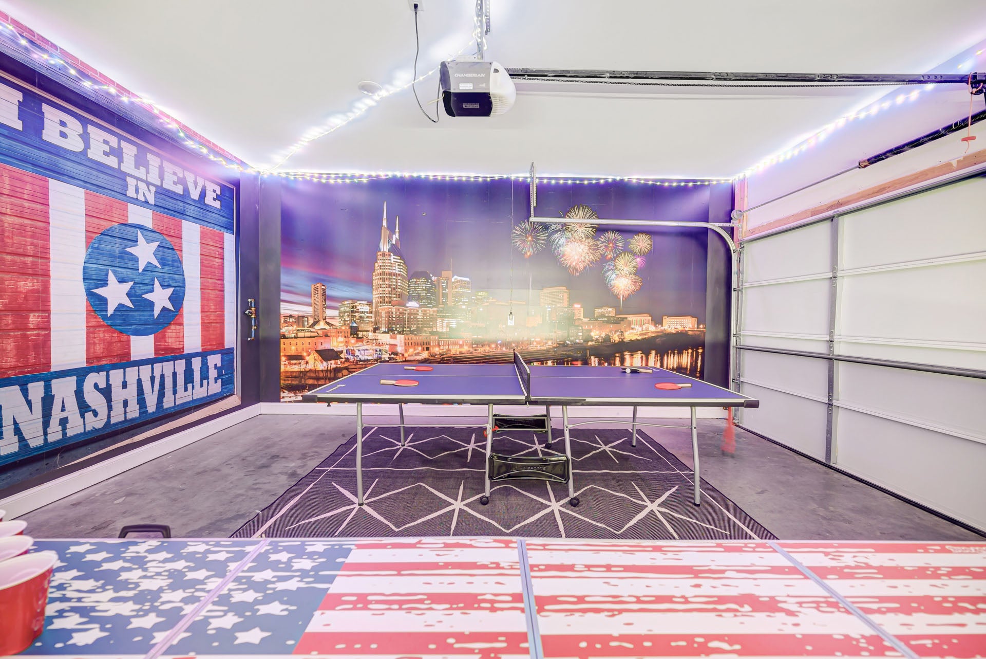 The main floor is perfect for hosting big groups and the bedrooms are on the first and third floors. 9 total beds allow everyone to spread out! The garage has a mounted TV, a ping pong table, arcade game, and shuffleboard for creating more fun memories with your friends and family.